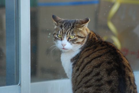 途中、猫が出待ちしている店を発見。何故か全員が一斉に店の中を覗いている。