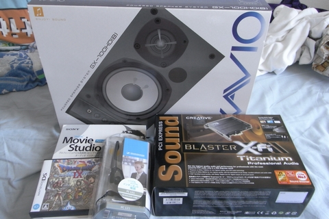 ONKYOのサウンドカードと迷ったんだけど、あっちはPCIオンリーなので結局こっちに。PCIの場合、GTX260とMonster-Xにはさまれる形で接続される形になるため、熱の問題も考えるとちょっとなぁと思ったので。