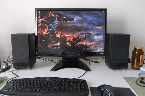 今までのスピーカーの倍くらい横幅取ってるけど、そのぶんいい音出てますぞ。
