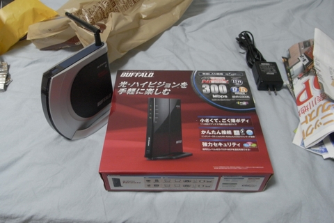BUFFALOの無線LANルータ。長年使っていた無線LANルータの調子がおかしくなってきていたので、新しいものに。